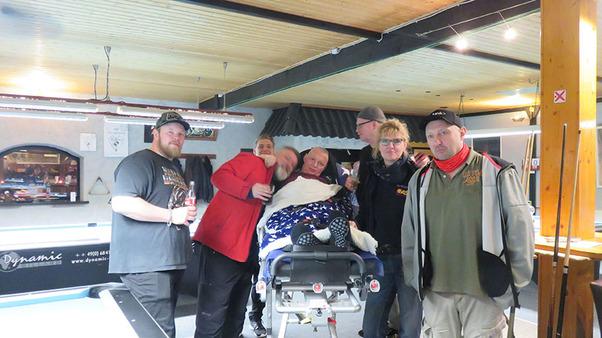 Am 29. Februar haben ihm unsere Wunscherfüllerinnen Tanja Freymann und Annika Kretzschmar dies möglich gemacht. In Begleitung seiner Lebensgefährtin Jessica ging es von Rendsburg nach Itzehoe. Bei den Gamblers angekommen, überraschten viele Freunde und Vereinsmitglieder Eric unter anderem mit einem liebevoll hergerichtetem Buffet. Absolutes Highlight war es, ein letztes Mal ein paar Kugeln zu versenken. Allen Anwesenden und besonders Eric stand dabei die Freude ins Gesicht geschrieben.